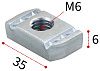 Крепежный элемент Fischer FCN 077405 представляет собой канальную гайку для монтажного профиля FUS. В её конструкции предусмотрено сквозное резьбовое отверстие М6 для болта или шпильки. Изготовлена из оцинкованной стали.