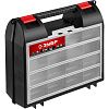 - Крышка оснащена секциями для хранения мелких комплектующих (сверла, биты, шурупы, дюбеля, переходники).