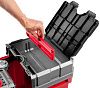 - Съемная полка позволяет организовать два уровня хранения: крупный инструмент размещается в основном отсеке, а часто используемые предметы и мелкие принадлежности - на съемной полке.