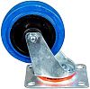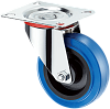 Колесо SRCL предназначено для оснащения различного промышленного оборудования: грузовых тележек, передвижных станков, строительных лесов, вышек, платформ и т.п. Благодаря роликовому подшипнику колесо обладает низким сопротивлением качению. Кронштейн с поворотной платформой изготовлен из стали и оцинкован. Обод изготовлен из ударопрочного нейлона. Контактная часть колеса из синей резины не требовательна к качеству напольного и дорожного покрытия. Материал обладает хорошим сцеплением даже с мокрым полом и не портит покрытие.