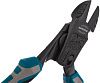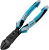 Усиленные бокорезы Gross 17575 предназначены для разрезания кабелей, проводов, проволоки или рояльных струн. Усиленная конструкция позволяет бокорезам перекусывать не только алюминий, медь, пластмассу, но и более жесткие материалы из стали диаметром до 3,5 мм. Встроенный рычажный механизм и смещенный непосредственно к режущим кромкам шарнир увеличивают усилие реза на 50%.