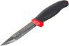 Клинок выполнен из нержавеющей стали, обладающей хорошей коррозионной стойкостью, легкостью в заточке и приличной твердостью. Эргономичная пластиковая рукоятка с резиновым покрытием не скользит в руке во время использования.