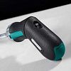 - Рычажная конструкция отвёртки состоит из подвижной головки (создаёт угол 0° и 60°) и пластиковой нескользящей рукоятки.