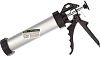 Корпус изготовлен из инструментальной стали и алюминия, что гарантирует высокую прочность и устойчивость к деформациям и коррозии. Рукоятка выполнена из противоударного пластика, что обеспечивает комфортный хват, снижает общий вес инструмента и устойчива к механическим повреждениям. Поршень изготавливается из стали для обеспечения эффективного и равномерного давления на содержимое тубы. Такая комбинация материалов делает пистолет надежным решением для профессионального и бытового использования, особенно при работе с густыми составами.