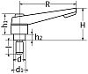 | Длина рукоятки, R (мм) | Диаметр резьбы, d (мм) | Общая высота, H (мм) | Диаметр, d1 (мм) | Высота, h1 (мм) | Высота, h2 (мм) | Длина резьбы, l (мм) | Цвет |